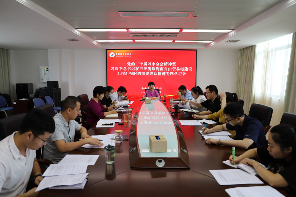 11月11日上午,海南省慈善总会组织召开专题学习会议,深入学习贯彻党的二十届四中全会精神,准确把握习近平总书记在三亚听取海南自由贸易港建设工作汇报时重要讲话的核心要义,切实将思想和行动统一到党中央决策