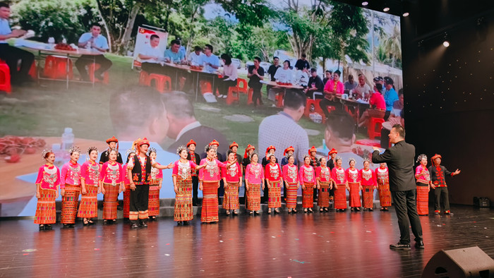 晚会节目精彩纷呈,以艺术形式生动诠释了慈善文化与琼岛风情。演出在热闹欢腾的开场舞《恭贺新春龙狮呈祥》中拉开帷幕,随后,《奋力自贸港》《拥抱世界的海南》等节目激昂展现海南发展朝气,《久久不见久久见》《崖州年》等表演深情传递本土人文韵味,琼剧《三看御妹》、二胡独奏《战马奔腾》等则彰显了传统艺术的魅力。整场演出融合歌舞、戏曲、朗诵、器乐等多种形式,最后在《我的祖国》《爱的奉献》等经典合唱中推向高潮,用艺术语言讲述了慈善故事,烘托出浓厚的新春氛围与家国情怀。