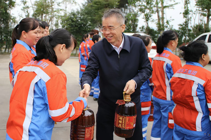 慰问过程中,陆志远一行亲手将大米、食用油、凉茶、牛奶等满载社会关怀的新年慰问品及慰问金送到环卫工人手中,亲切询问他们的日常工作与生活状况,并叮嘱大家在春节期间坚守岗位的同时,要注意防寒保暖和作业安全。