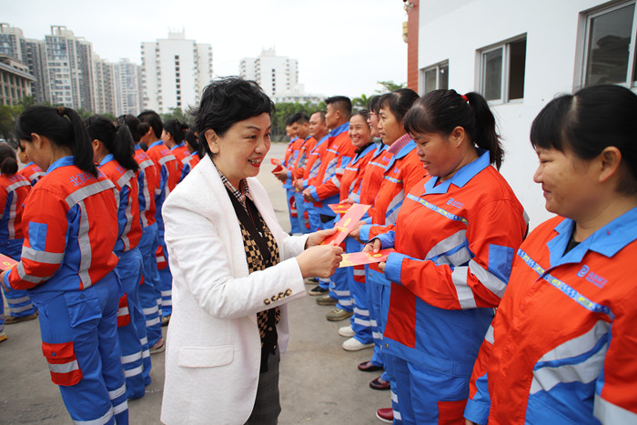 活动现场,陆志远会长代表省慈善总会向辛勤工作在一线的环卫工人们致以诚挚的问候和节日的祝福。他指出,环卫工人是当之无愧的“城市美容师”,是城市运转不可或缺的坚实根基。大家不畏寒暑、风雨无阻,用朴实的劳动装点椰城风貌,用默默的坚守守护万家洁净,这份平凡中的伟大,值得全社会致以最高礼赞。“春节是万家团圆的时刻,也是环卫任务最重、大家最辛苦的时候。我们始终惦记着每一位坚守岗位的劳动者,特别是生活上还存在困难的职工兄弟姊妹。”朴实真挚的话语,让在场的环卫工人倍感温暖与鼓舞。他进一步强调,海南省慈善总会将始终牢记服务民生之使命,积极发挥慈善事业的桥梁纽带作用,广泛动员和汇聚社会爱心力量,不断创新帮扶形式、拓展覆盖范围,扎扎实实为困难群众排忧解难,努力让慈善之光普照琼州大地,为海南自贸港建设注入更多温暖与向善的力量。